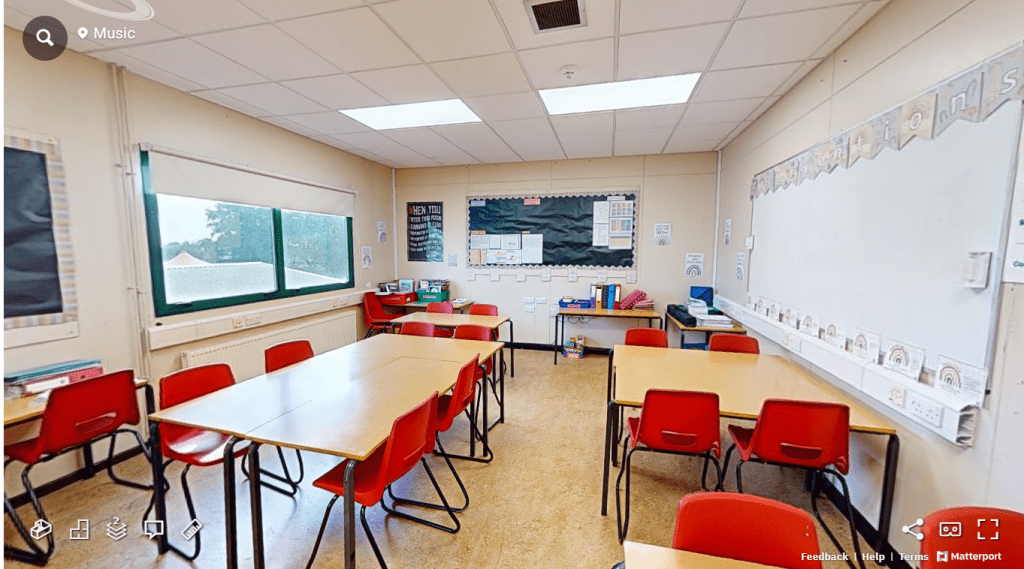 Once the images had been captured, they were linked together and uploaded to the Matterport website. The Matterport digital twin provided a 3D tour of the school, with the opportunity to add comments within the images, include precise measurements and generating 4K print quality photos, schematic floor plans and guided tours.