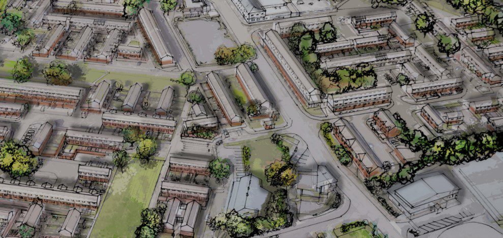 Grey Mare Lane is part of One Manchester Housing Association. It is a large urban redevelopment scheme to the south of Manchester City’s football ground, the Etihad Stadium. The brownfield site is undergoing a regeneration and redevelopment, to create a range of new affordable housing. Properties and tenants are already in residence too, as the district is a well-established estate. Its redevelopment is part of the Eastlands Regeneration Framework, which is a schedule of work agreed by Manchester City Council. This plan sets out the vision for the wider area and the proposed investment in facilities, new businesses and work opportunities. It is being coordinated by Manchester City Council, One Manchester, Manchester Life and other partners. The Eastlands Regeneration Framework has identified the area around Grey Mare Lane as one of its key focus areas.